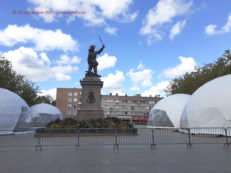 Mais non ce sont les tentes d'accueil et de préparation pour la course annuelle des "boucles dunkerquoises". Un matin où sont proposées plusieurs parcours en ville suivant les âges et la forme de chacun.