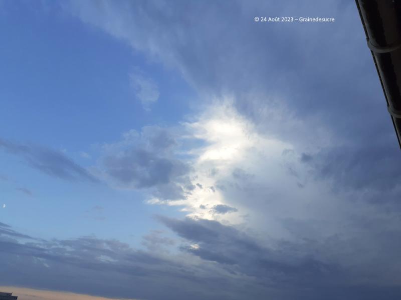 et puis un éclat de nuages juste avant l'orage.... une belle trouée bleue clair... je ne m'en lasse pas !!!