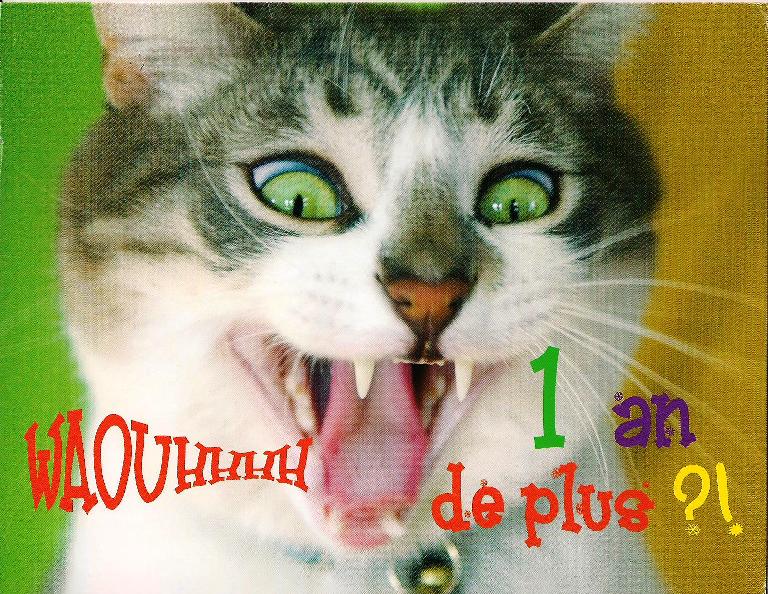 je ne m'y attendais pas du tout, et ce jour-là au courrier, Catherine des Délices de la Hague m'avait envoyé une super carte d'anniversaire ! l'est pas beau ce joli minet là merci du fonds du coeur Catherine bisou