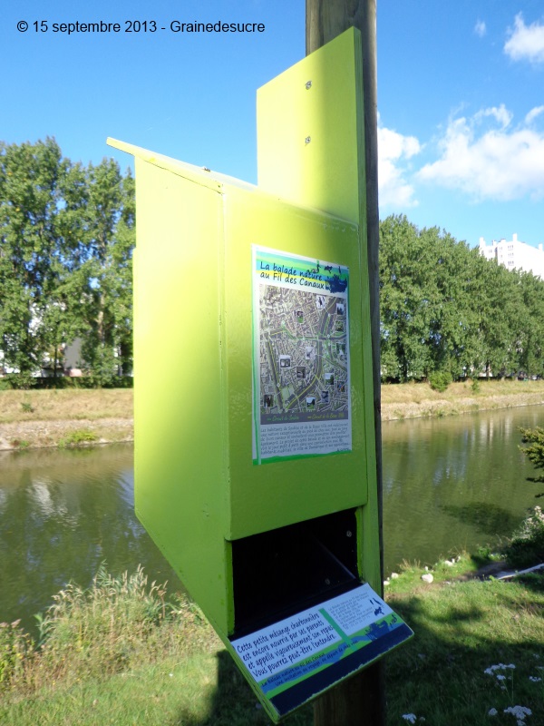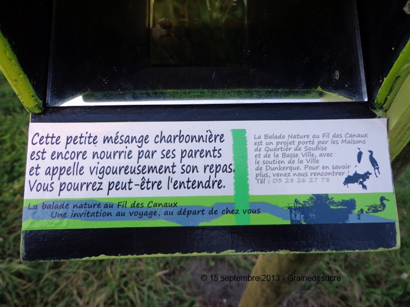 A l'abri de la pluie et des rayons du soleil, à l'intérieur vous trouvez la photo de l'oiseau à observer (trop sombre je n'ai pas pu photographier) et en dessous, vous avez l'explication sur l'animal que grâce au petit poteau vous avez observé juste à côté ou pas loin...