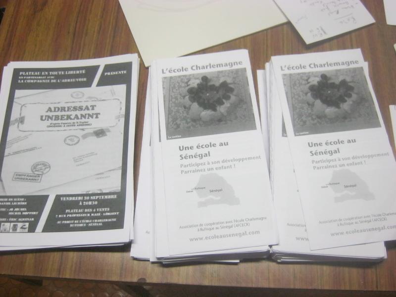 Quelques prospectus de la piece de théatre et de l'AFCECR sont mis a disposition du public