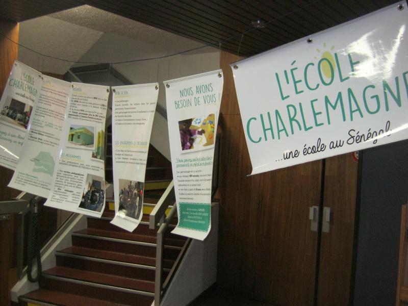 Des panneaux de présentation de l'AFCECR ont été installés à l'entrée de la salle de spectacle.