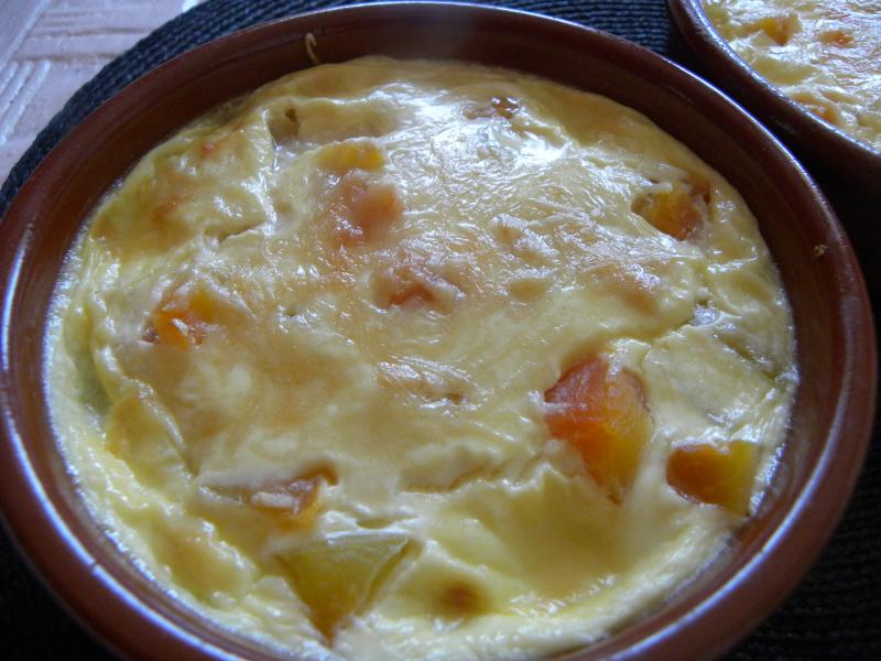 Pendant ce temps peler et hacher finement 5 gousses d'ail,mélanger aux dés de papaye remplir des ramequins individuels et recouvrir de crème cuire pendant 15-20mn à four chaud 170°.