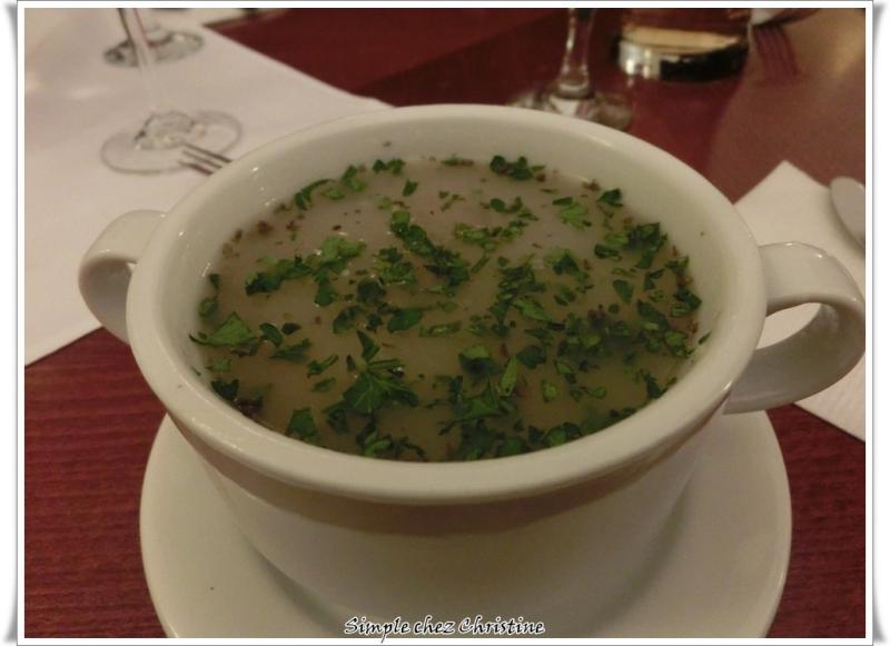 un potage pour commencer, toujours très consistants avec des pommes de terres, des légumes