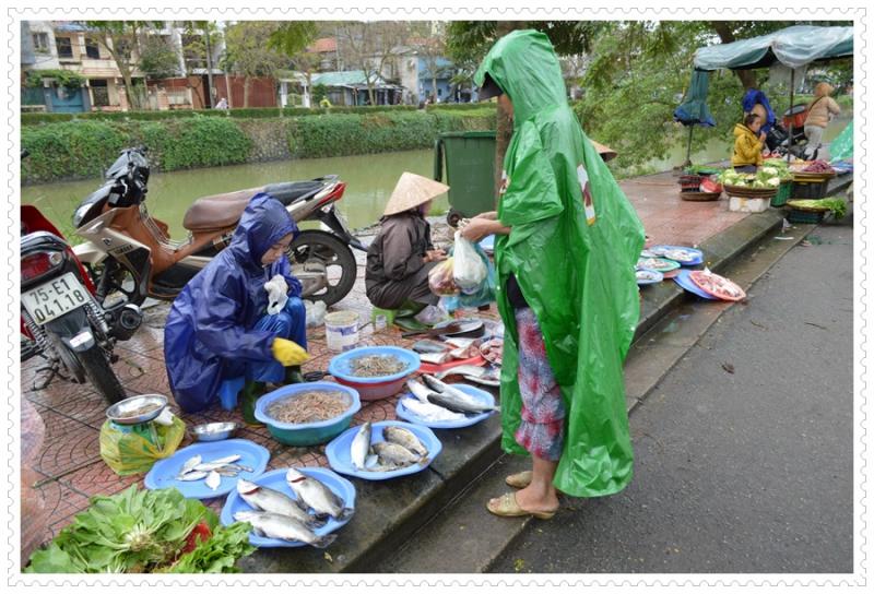 Un marché en mobylette, comme tous les déplacements se font en mobylettes pourquoi pas le marché...même sous la pluie