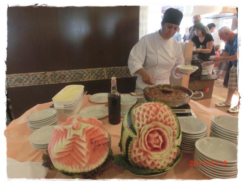 Les soupes et les veloutés de poissons abondent en Algarve, et les fruits de mer y sont rois. La spécialité la plus reconnue est la morue (Bacalhau) consommée à l'occasion de fêtes ou en beignets. Il y a 365 manières de consommer la morue, un plat par jour. La sardine est aussi un plat de tous les jours grillée, elle est un excellent met car frais du jour. Pour le dessert, l'Algarve est le royaume de l'amande. Les amandes sont utilisées entières ou en pâtes mélangées aux oeufs et aux figues. Un buffet poissons et viandes cuisinés de différentes façon, légumes de toutes sortes cuits ou crus, le buffet de dessert, le choix était difficile.... Voici quelques photos. Le rayon du pain et viennoiserie au petit déjeuner. Beurre, fromage, crudités, fruits, petit déjeuner.
