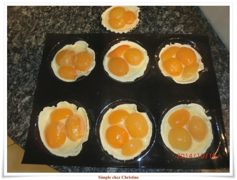 Déposer une noisette de cette préparation sur chaque rond de pâte, puis placer dessus un oreillon d'abricot, face bombée vers le haut.