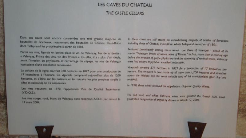 J'ai eu des soucis d'appareil photo la batterie HS !!!! J'ai quand meme photographié les cuisines et la cave, mais pas l'intérieur du château. Un fleuron de l'architecture renaissancequi fut, au XIXè siècle la propriété du prince de Talleyrand, célèbre ministre de Napoléon... Un mobilier empire exceptionnel.