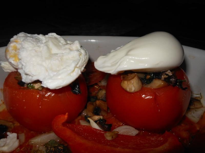 de Sylvie.Voilà le résultat.Non ,non, je n'ai pas essayé avec 6 oeufs avant d'arriver à en avoir 2 corrects!!C'est vrai je n'en avais jamais fait !! j'ai utilisé 3 oeufs dont 1 loupé de chez loupé !! Dans mon plat , j'ai mis l'intérieur de mes tomates, des oignons, de l'ail,un reste de poivron rouge , du basilic et un peu d'huile d'olives.Servi avec du riz basmati .Nous nous sommes régalés.N'hésitez pas c'est très bon.