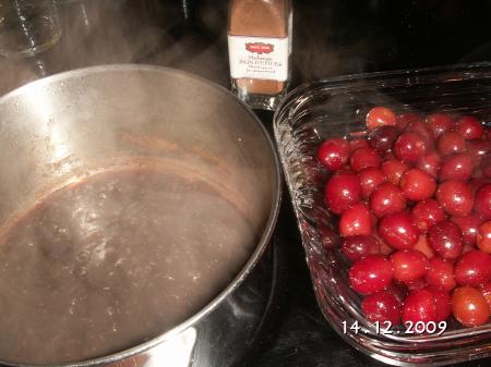 laisser cuire jusqu'à ce que le jus devienne sirupeux et verser sur les cerises