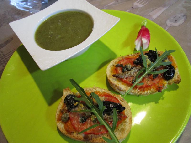 TARTINADES, POTAGE DE FANES DE RADIS |
