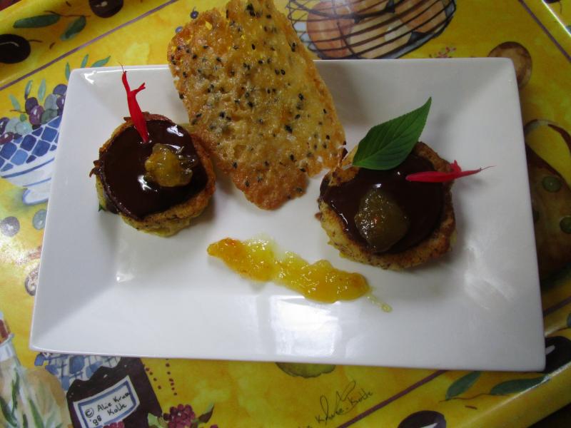 Du pain brioché décliné en pain perdu avec une ganache à l'orange
