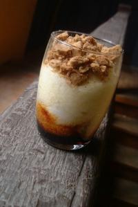 Dressez dans des verrines en alternant caramel, mousse aux pommes et speculoos en miettes.