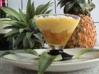 Préparez la crème Pina Colada. Dans une casserole, réunissez le lait et le lait de coco, 1/2 ananas coupé en cubes et portez à ébullition. Mixez pour obtenir un liquide homogène.