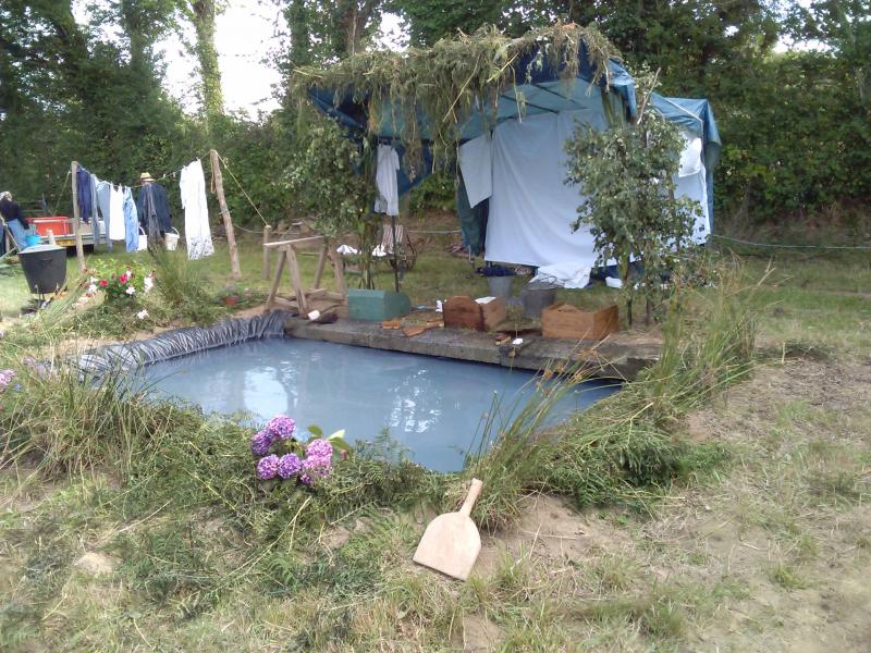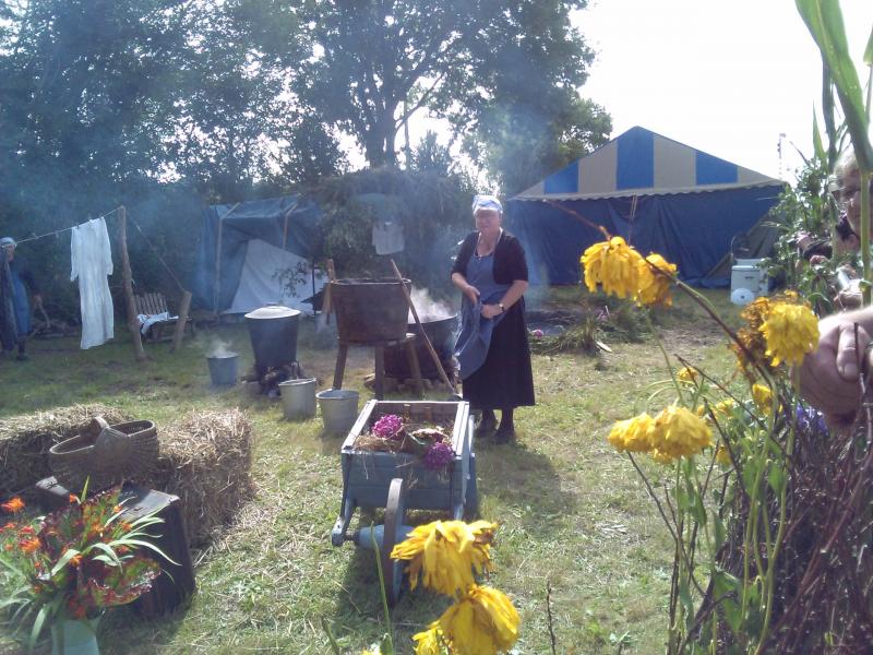 UN LAVOIR RECONSTITUE POUR LE FESTIVAL LA SOUPE AUX LEGUMES CUIT TOUT A COTE ET LES CONFITURES CUISENT DANS LE CHAUDRON