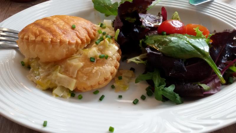 FEUILLETTE DE POIREAUX ET BAR SAUCE VIN BLANC ET LEGUMES