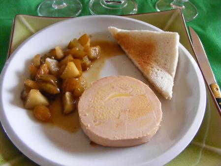Foie gras avec compotée de poires aux raisins