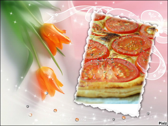 nous sommes à 40kgs de tomates nous en profitons un maximum j'ai pris une pâte du commerce de grosses rondelles de tomates dessus du poivre et du thym frais un vrai régal pour presque rien servit avec une belle salade en direct du jardin et vous vos tomates elles rendent bien belle soirée à vous