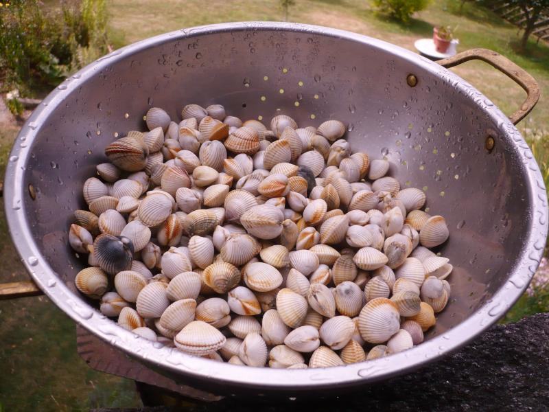 Retirer les fruits de mer de leur coques (en garder quelques unes entières pour la décoration de l’assiette.