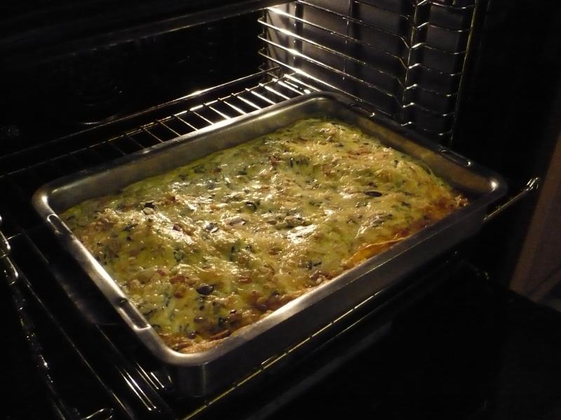 On commence à monter le plat, avec un filet d'huile d'olive sur le fond du plat, les lasagnes couvriront le fond, on verse la préparation, blettes crème, on recouvre de lasagnes, ainsi de suite pour finir les ingrédients en finissant par la crème et les flocons de Terres et céréales bio pour le croquant.