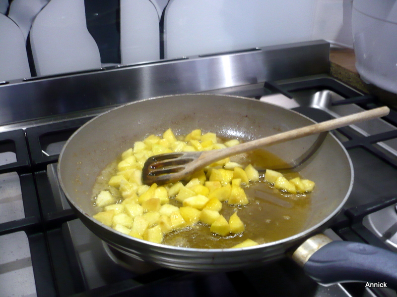 fruité Ingrédients: 2 pommes, 2 œufs, 75 grs de farine, 75 grs de sucre, 75 grs de beurre, 1 s de vanille, 1 s de levure, 50 grs de caramel, 200ml d'eau pour le cookeo. Les pommes seront, épluchées puis coupées en morceaux. Faire fondre le beurre au micro-ondes, dans une poêle, faire sauter les pommes avec le beurre. Dans un saladier: sucres, farine, levure, œufs, beurre, pommes.