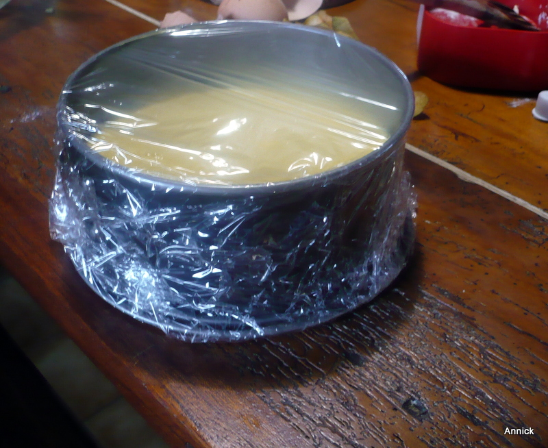 Dans le fond d’un moule rond, mettez le caramel puis placez le moule dans le panier vapeur. Versez la préparation du gâteau dans le moule, recouvrez de papier film puis programmez 40 minutes en cuisson sous pression