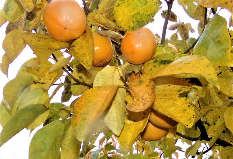 Les kakis sont toujours sur l'arbre pas encore ramassés.