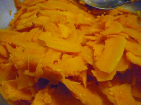 Une astuce ? j'ai cuit le potimarron 10 mn au micro onde pour pouvoir l'éplucher plus facilement!