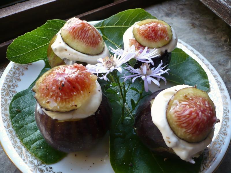 Plaquez une feuille de figue sur l'assiette, pour disposer vos fruits,