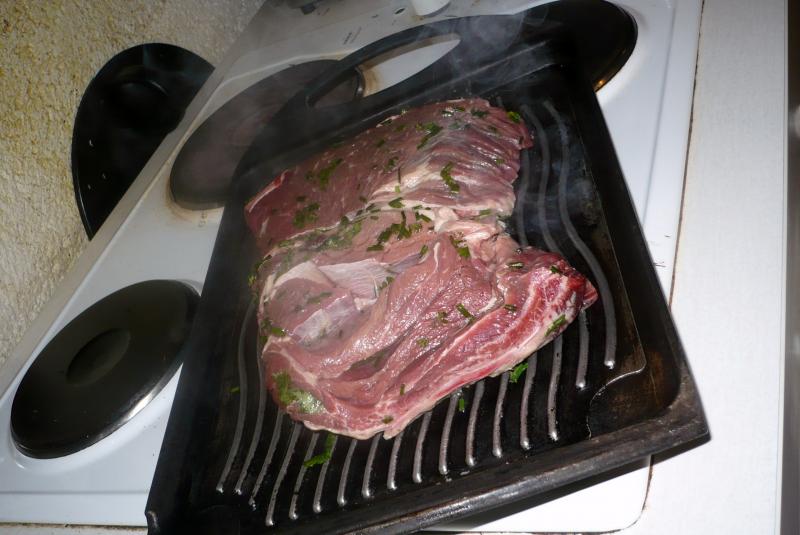 Huilez le gril, et, déposer votre viande, cuire sur chaque face, pour 1 kg 300 un peu plus de 20 mn en tout!