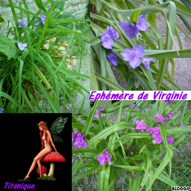 Mireille et Dely, je ne connaissais pas leur nom"éphémère de Virginie" c'est magnifique, c'est une fleur sans problème qui pousse super bien, pour vous dires, ce sont des fleurs que j'ai ramené de la région parisienne en 2003 et que j'ai repiqué en Bretagne, la couleur rose à été repiqué l'année dernière !