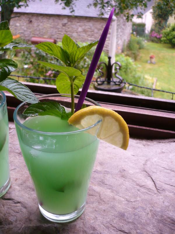 2 bouchons de rhum, mélange(citron, menthe, sucre) remplir le verre de glaçons, puis d'eau gazeuse ou plate, servir bien frais!
