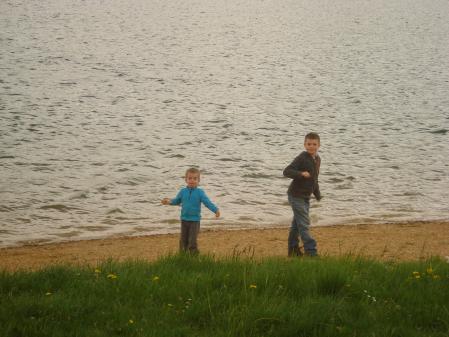 les petits loups s'amusent au bord de l'eau tandis que Mich prend son petit moment de solitude.................