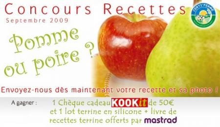 Et nous reprenons les bonnes habitudes avec le nouveau 'Jeu concours de Recettes de Certi'Ferme' Et voici une thématique de saison qui devrait vous inspirer "Pomme ou Poire?" Voici nos conseils pour avoir les meilleures chances: Simples ou élaborées, sucrées ou salées…Envoyez-nous vos recettes gourmandes, délicieuses, originales, préparées avec des pommes ou des poires ou bien encore les deux !Sans oublier la photo de votre oeuvre!