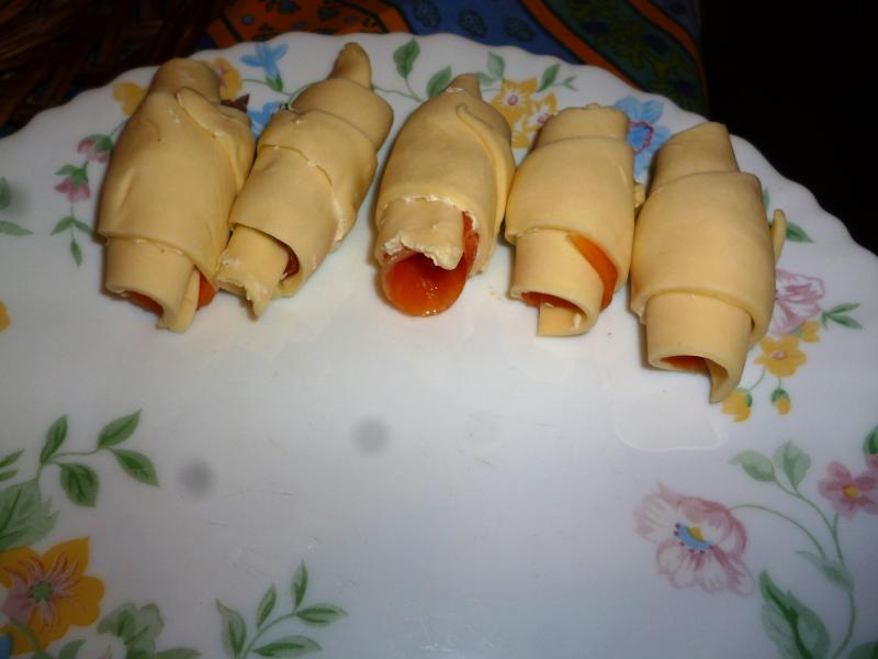 poser un morceau de saumon,sur le haut de triangle de pâte.