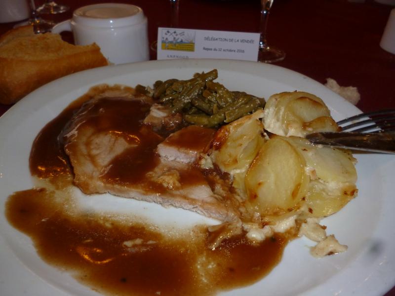 Plat : Noix de chef mariné, accompagné de son gratin et haricots verts
