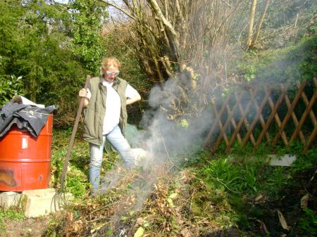 Un après-midi bien occupé. Comme j'avais de l'aide nous avons brulé tous les "détritus" puisque les passages à la déchetterie sont comptabilisés on se débrouille autrement .Voici donc notre "brûlot" . Et FLO avait mis les lunettes de natation !!! l'eau ou le feu ça pique .......