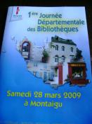 Nous étions cinq participants de notre Bibliothèque: Le Marque - Page ( Le Président, une salariée, et 3 bénévoles . Départ de Mortagne ( 2 voitures) à 8h.Nous les "petites Nanas" nous ne voulions pas être en retard. Arrivée sur le lieux à 9h,nous étions les premières. Ainsi nous avons pu choisir notre atelier et récupérer nos enveloppes. Celle-ci contenait : le programme, des feuillets, un crayon,un porte-clefs,un pins, trois bonbons, tout cela avec le cycle de Vendée bien sûr!!! Et notre ticket repas. Bien "avisées" car nous étions 300 .... 9h30 : Accueil des participants. 9h45 : Conférence d'introduction et table ronde présidées par le Vice-Président du Conseil Général. 10h45 : 3 Ateliers au choix : 1 - Elargir et diversifier le public des bibliothèques. 2 - Faut il toujours autant de m2. 3 - La gestion informatisée et la circulation des collections entre les bibliothèques. 12h30 Déjeuner :( pain de piosson, oeuf dur sur salade de riz - sauté de volaille , petits légumes, fromage, mousse framboise, café ) Merci au Conseil Général !!!! 14h Restitution des ateliers. 15h Visite libre du Printemps du Livre. - Tout cela aurait été super si les horaires avaient été respectés, mais voila, la table ronde à duré plus que prévu; les Présidents des Communautés de communes, les Maires etc...Nous ont bien raconté leurs expériences, et certains en redemandaient .... bref . Un gros retard sur les horaires. -Et avant la restitution des ateliers : Une surprise nous attendait, deux comédiens nous ont conté quelques extraits d'humour . Et il était 15h 15 - Lasses de tout cela nous sommes parties ,comme nous avons "ouvert la marche" ça a suivi : Les moutons de PANURGE . et direction les Livres. Belle et bonne journée tout de même , et très enrichissante sur certains aspects .
