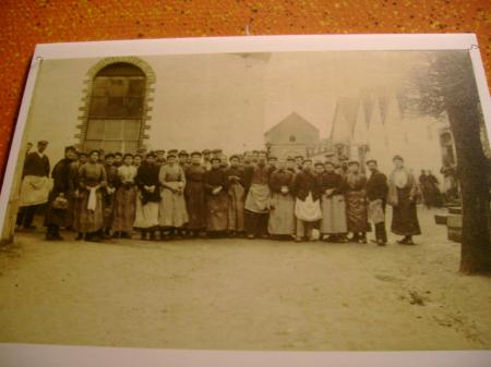 Les ouvrières devant l'usine de textile : Fleuriais A l'époque une grande majorité de Mortagnais y travaillait .