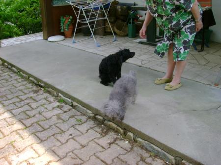 Voila aussi nos deux copines:OBALA?La chienne de mon amie Bretonne,et HILDA,ma toutoune