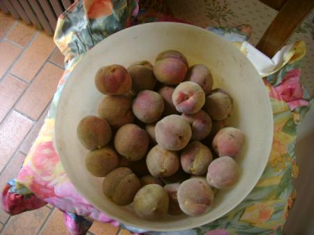 Je suis restée "sagement " à la maison à éplucher des pêches .....