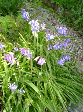 En ce moment c'est vraiment l'abondance de fleurs au jardin... je crois que ce sont des jacynthes sauvages...Pour moi ce sont des "CLOCHETTES" Elles sont venues je ne sais d'où, et commencent à envahir le terrain.. Des bleues, des blanches, des violettes...