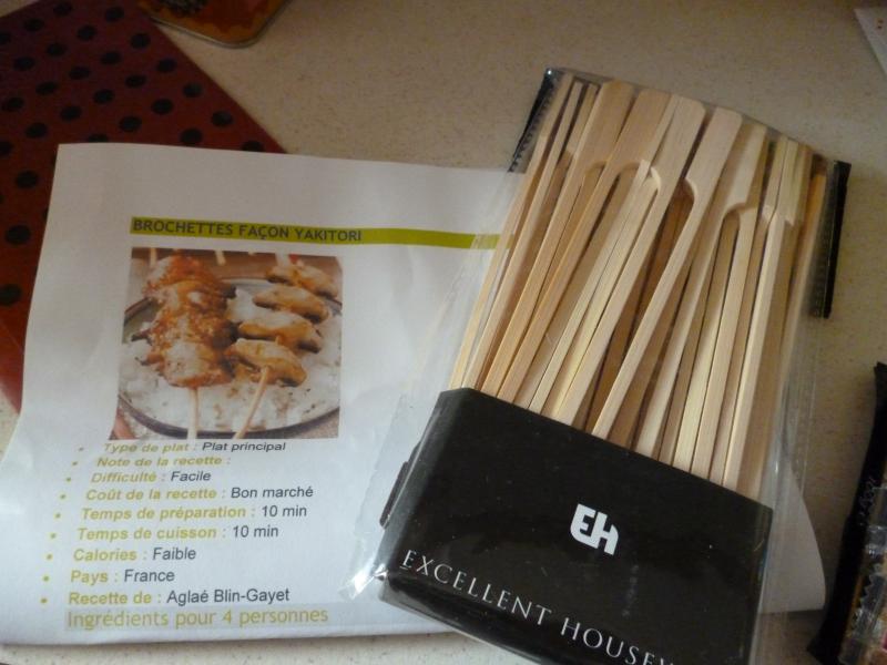 Des petites brochettes accompagnées de fiches de recettes, elles vont être testées la semaine prochaine, car j'attends des visiteuses( on en reparlera plus tard).