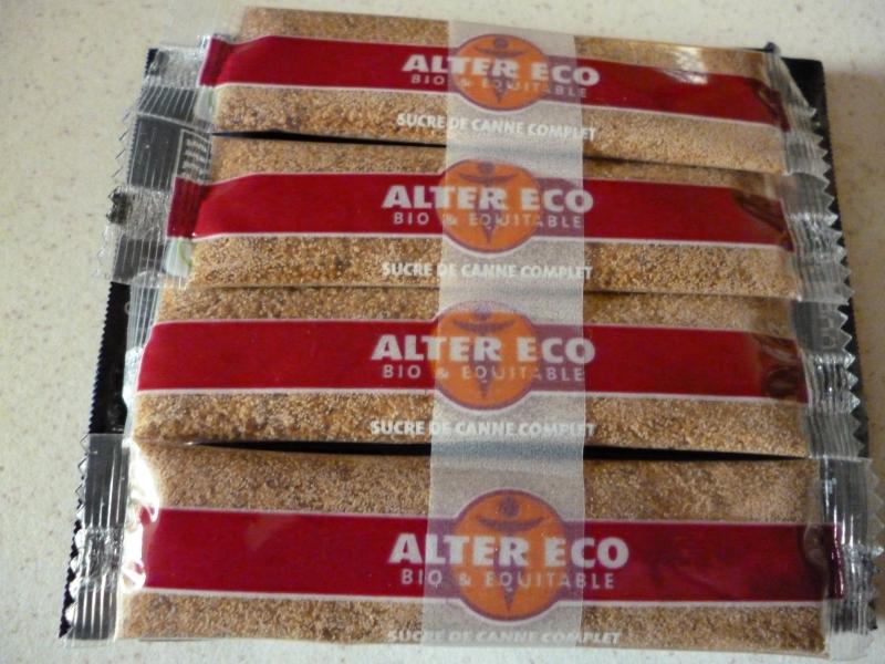 Plusieurs petits sachets de sucre roux