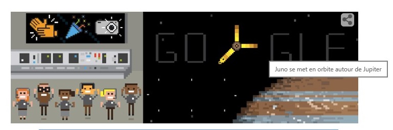 Doodle du jour consacré à la mise en orbite de JUno qui est parti de la terre le 05/08/2011