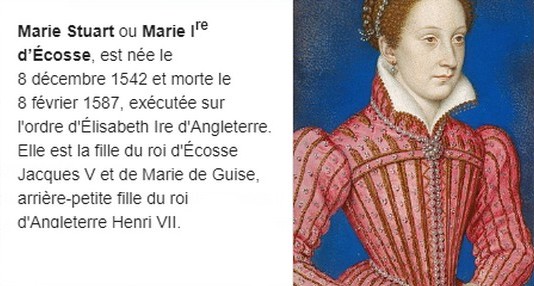 que peut il bien se passer le 14 décembre et bien internet m'apprend que Marie Stuart est née un 14 décembre Désolée pour ce post un peu décousu mais ce matin surprise inondation dans la cuisine, nous luttons depuis des semaines contre des rats mais hélas un a attaqué les bouteilles d'huile et de vinaigre et il a meme rongé une canalisation d'eau pfff