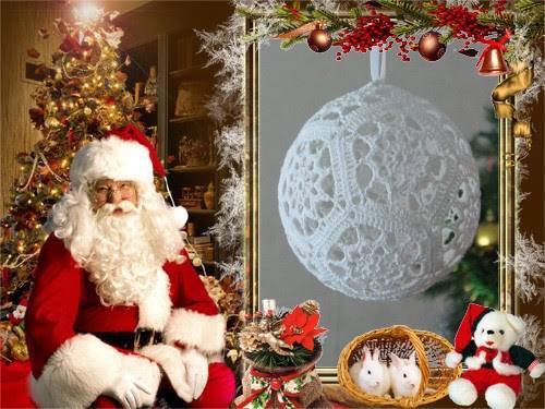 Une boule originale au crochet sauf que quand meme je me demande comment on fait pour empeser au sucre pour qu'elle prenne la forme de boule, pour l'instant je n'ai pas la solution dommage ca m'aurait plu d'avoir une boule personnalisée faite par moi cette année
