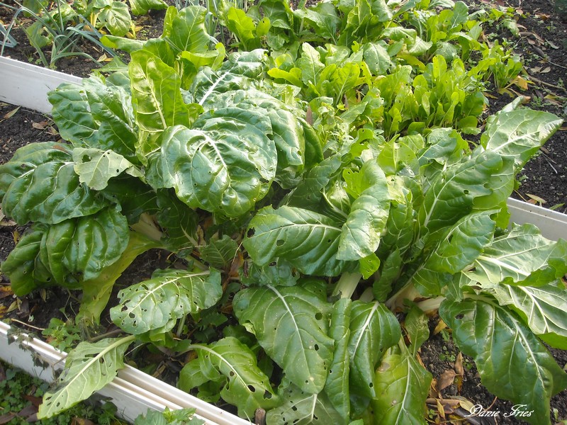 les feuilles de bettes sont mangées par des limaces peut être ! il va falloir que je me décide à les cuisiner avant qu'il ne soit trop tard !