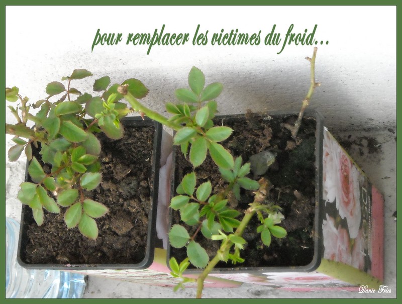 ... et deux rosiers, j'en voulais un rouge et un rose pour varier, comme sur la publicité du magasin, mais il n'y avait que la couleur rose !