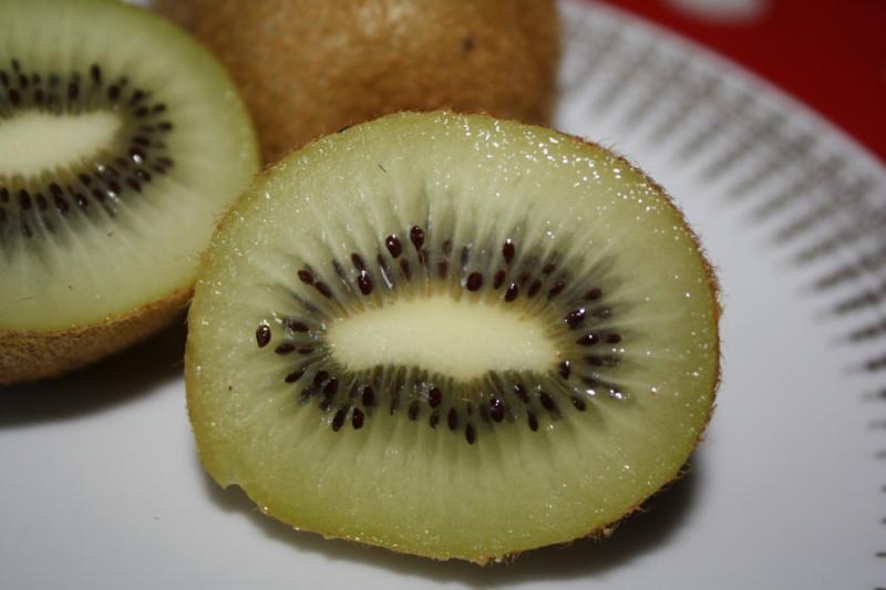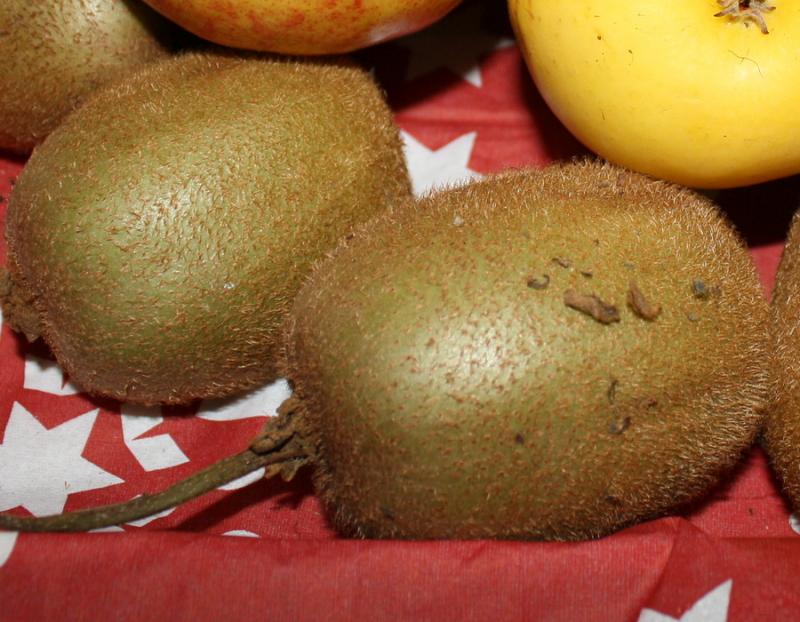 Effectivement, ces pommes contiennent un gaz; l'éthylène qui a donc aidé ces kiwis à venir à maturité; les poires et bananes contiennent aussi ce gaz. Par contre, les fruits qui ne mûrissent pas après la cueillette ne sont pas sensibles à ce gaz... C'est ce kiwi qui détient la teneur record en vitamine C devant les agrumes; un seul kiwi couvre en effet à lui seul tous nos besoins quotidiens en vitamine C.